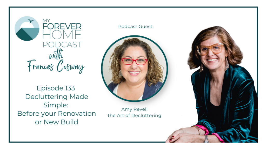 Frances is joined by decluttering expert, Amy Revell, who shares her wisdom on how to prepare to pack up and move for a renovation or new build. How to create a vision and create a home you’ll love.