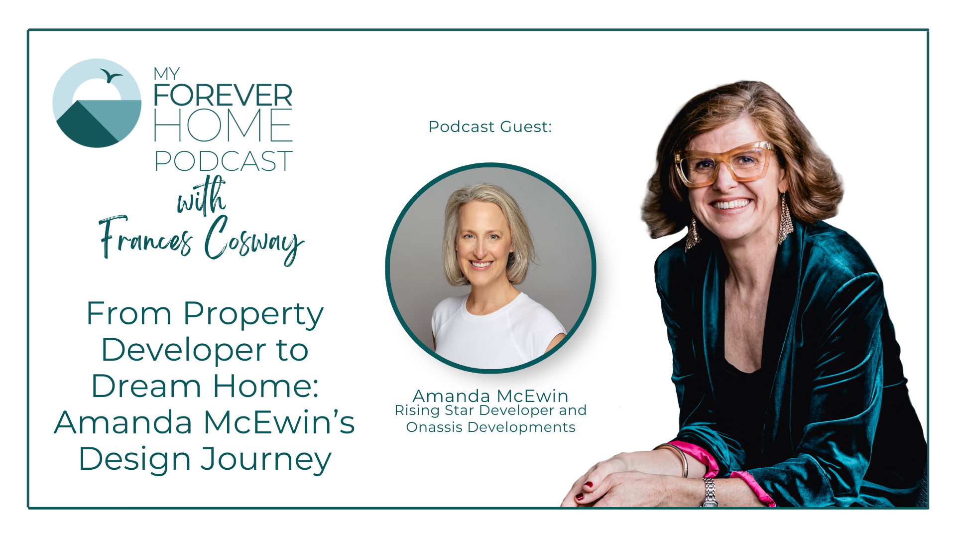 In this episode of the My Forever Home™ podcast, Frances speaks with Amanda McEwin, a successful property developer, about how she built her dream home. Amanda shares her experience of engaging an interior designer and they helped her navigate design challenges and solutions with her budget constraints. Tune in for key insights on the power of design professionals in creating your own Forever Home™ that works for you and your family.