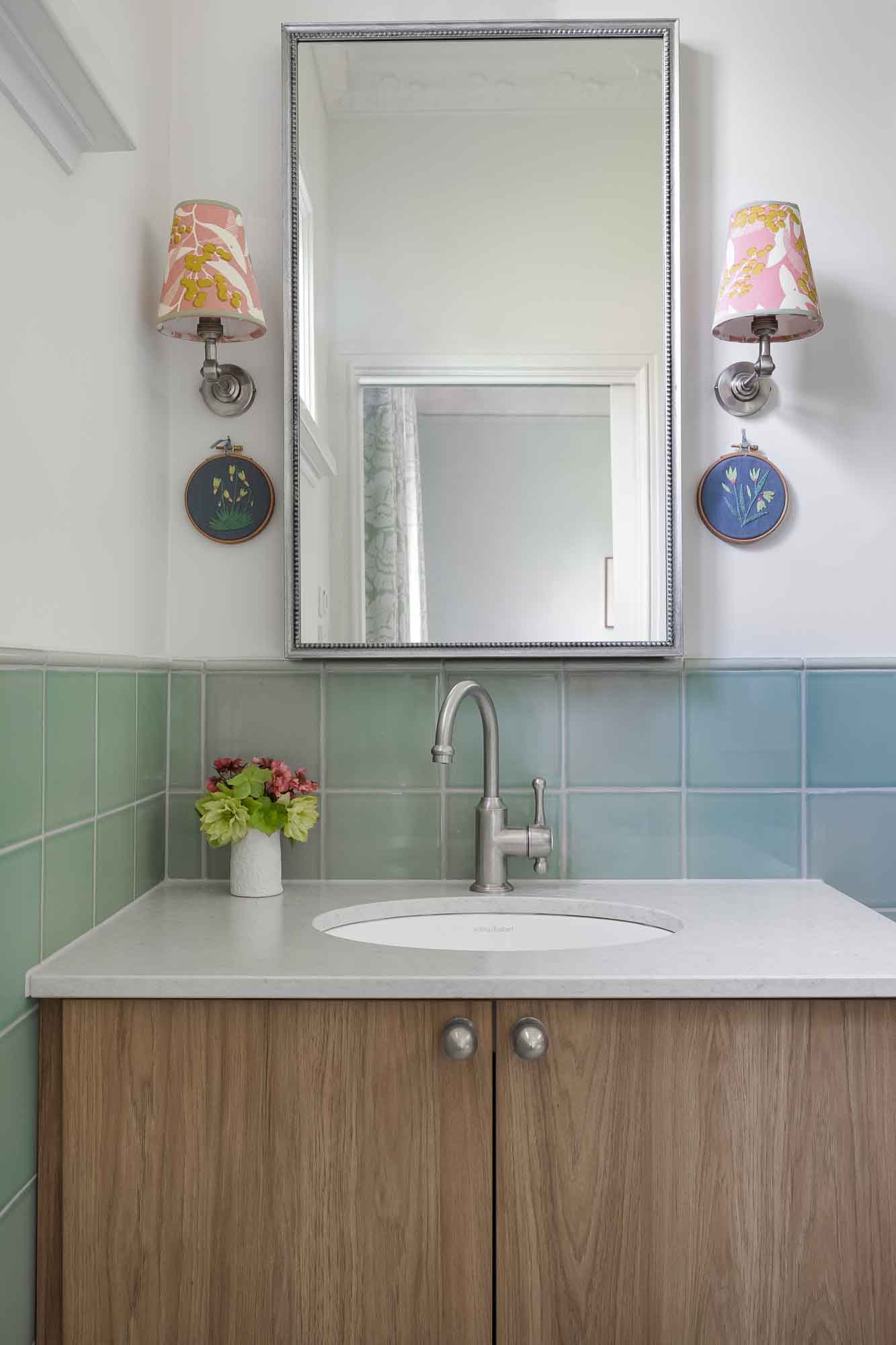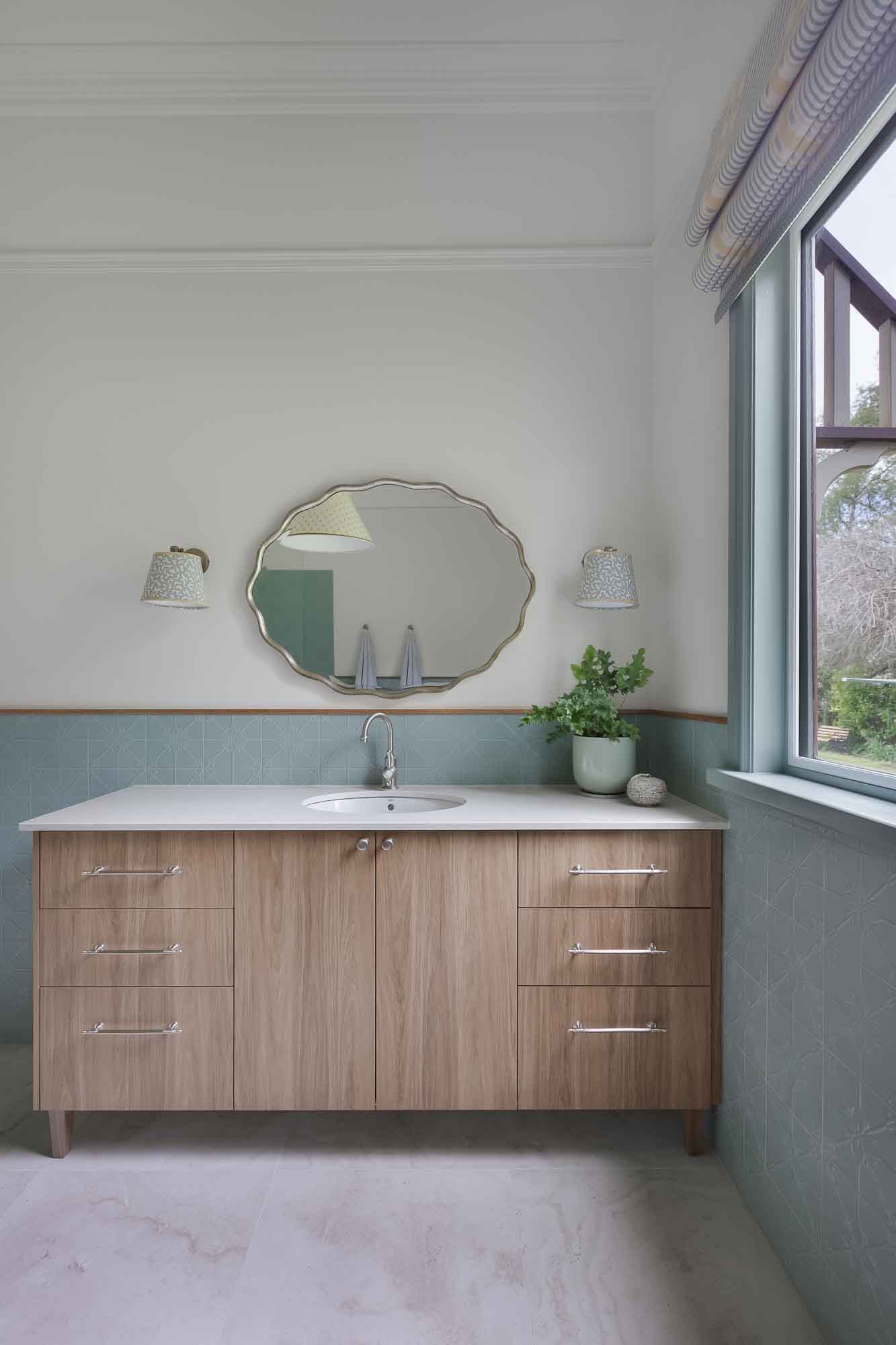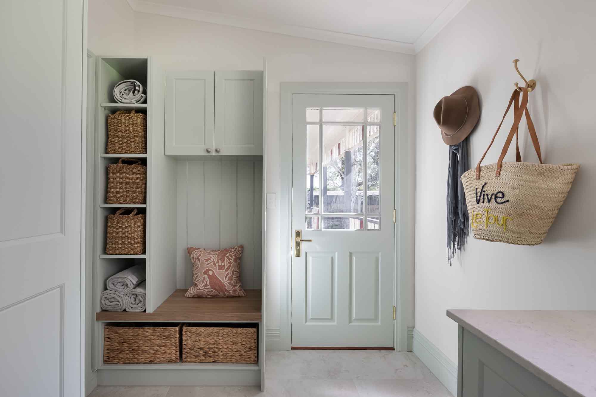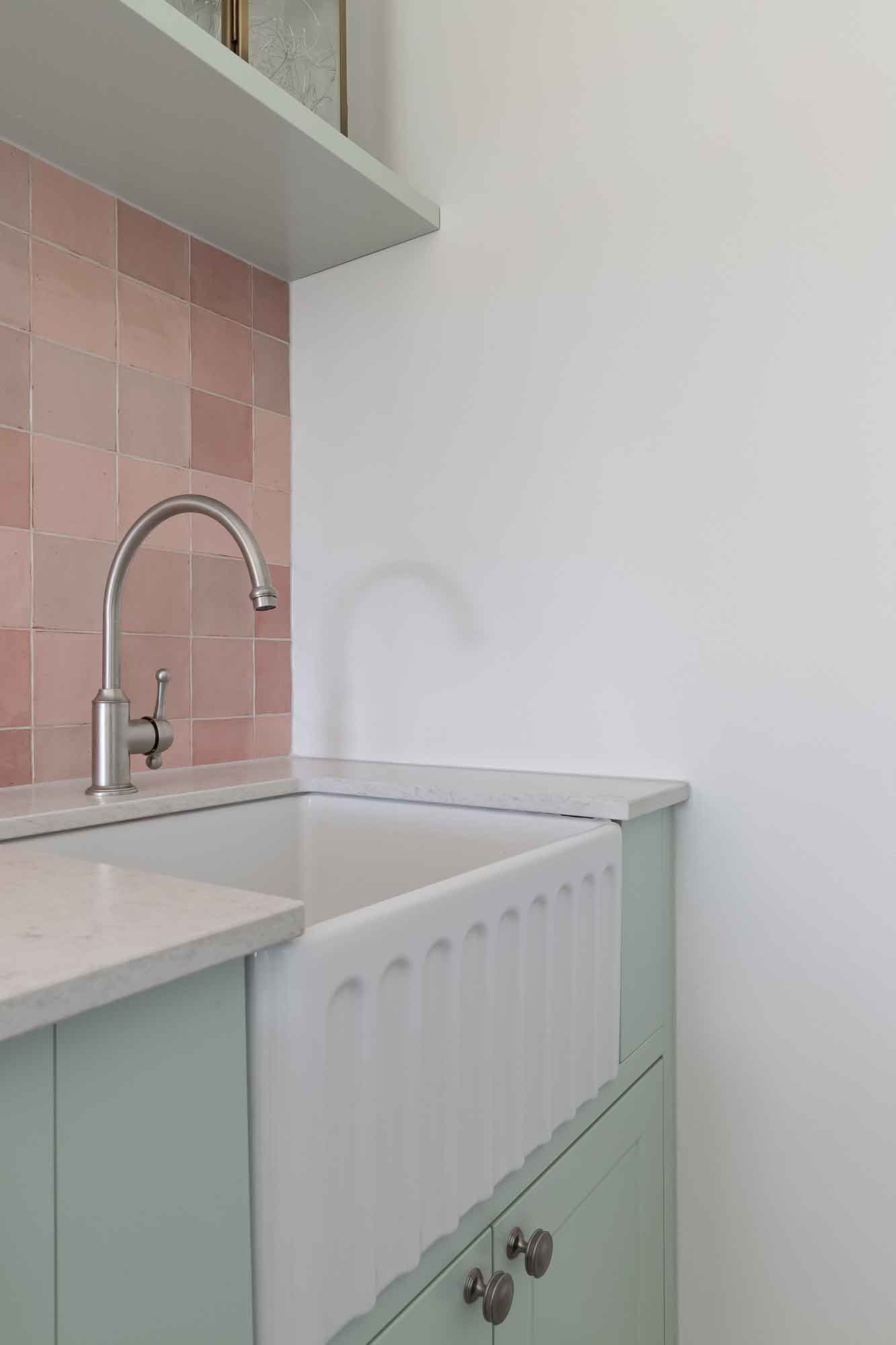 We were overjoyed our clients were not afraid to use colour! But rather than use dark and subdued traditional colours, our clients wanted a softer approach, that also made it feel light and fresh, and provide a sense of fun. We met the brief by specifying mint, pale pink and soft blues. As for the mint and pale pink in their laundry – well we’re in love with its improved functionality and the joyful feeling it provides.