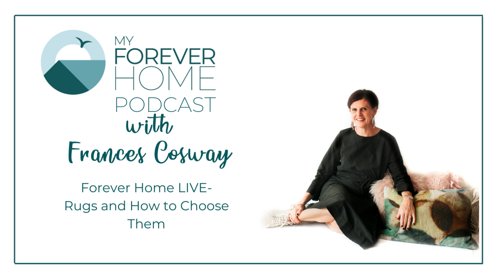 In this FB Live, Frances chats about rugs and how to choose them. She discusses the use of rugs to anchor a space and creating a soft space to relax on. She outlines their other uses for noise mitigation, creating layers in your room and adding texture and colour.